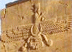 It isn't hard to discover the symbols of the Zoroastrian religion. Above you see the symbol for the Great God Ahura Mazda. You see him in a lot of places.