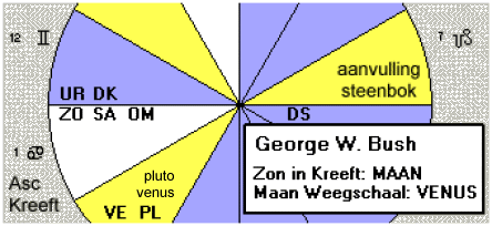 Wanneer je dan ook ziet (als astroloog) dat de vrouwelijke pool in George W. Bush (Zon in Kreeft en ascendant in het teken Kreeft) sterk vertegenwoordigd is, dan kun je daaruit alleen maar de conclusie trekken dat niet het terrorisme, maar extreemrechtse vrouwenhaat de grootste bedreiging voor hem is.