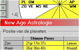 Zoals hierboven zichtbaar is zijn twee belangrijke negatieve aspecten die in de geboortehoroscoop van Peres aanwezig zijn nu werkzaam: Het negatieve Zon-Uranus-aspect, dat wijst op revolutie en scheiding, en het negatieve Mars-Saturnus-aspect dat wijst op situaties waarin kille, agressieve mensen, die geen hart van vlees, maar een hart van steen bezitten, het leven proberen te bepalen.