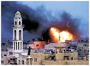 Even now, while the war is going on, Saddam's television broadcasts images of Israeli outrages in the Palestinian territories, in order to show to the Iraqi people how the heroic Palestinians, including the children, pit their lives against the huge might of the Israeli army...
