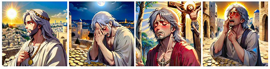 Judas is de mens die het om het aardse te doen is. Hij pleegt het verraad om geld.