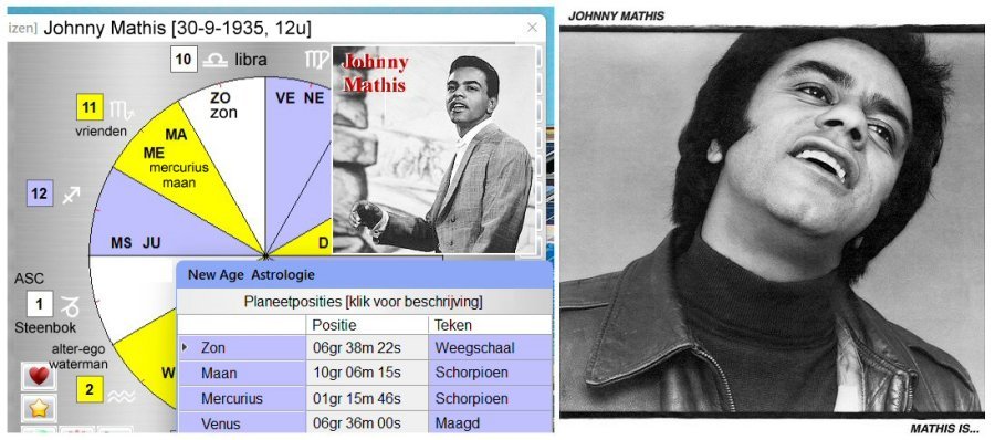 De Amerikaanse zanger Johnny Mathis laat zien dat het ook anders kan. Johnny Mathis is een romanticus die mensen laat weg zwijmelen in een warme, romantische sfeer van kaarsjes, zilveren servieswerk en witte damasten tafellakens, een vormenwereld waarin de planeet Saturnus zijn positieve, chaos overwinnende kant laat zien.