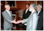 At this the Archangel took Muhammad in his arms and pressed him to him until it was almost too much to bear. He then released him and said again 'Read.'