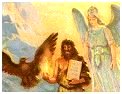 Gabriel, the second highest-ranking archangel, is the bearer of many messages {known, hidden, and secret}. Gabriel is considered gentler than Michael is. Gabriel's name means "Man of God", "God has shown himself mightily", and "God is my strength". In Islam, Gabriel {Jibril} dictated the Koran to the Prophet Muhammad. Gabriel was the messenger of the Annunciation to Mary, telling her of the coming birth of Jesus Christ. {Ditto to Zacharias about John, the Baptist [his son].} Gabriel is also associated with the foretelling of future events to Daniel; possibly the angel that destroyed Sodom and Gommorah; and the giver of succour to Christ during the Crucifixion. Another story {originating in Babylonia} is that once Gabriel fell from grace with God because he was reluctant to follow an order. He obeyed the order but got the slowest angel in Heaven to carry out the task. Finally, though, because Gabriel was excellent at giving good advice, he was admitted back into the graces of God. It is Gabriel who will blow the horn announcing the second coming of Christ.