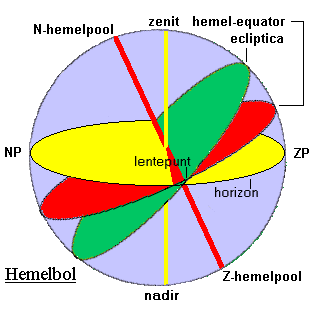 geprojecteerd: die bol noemen we de hemelbol....